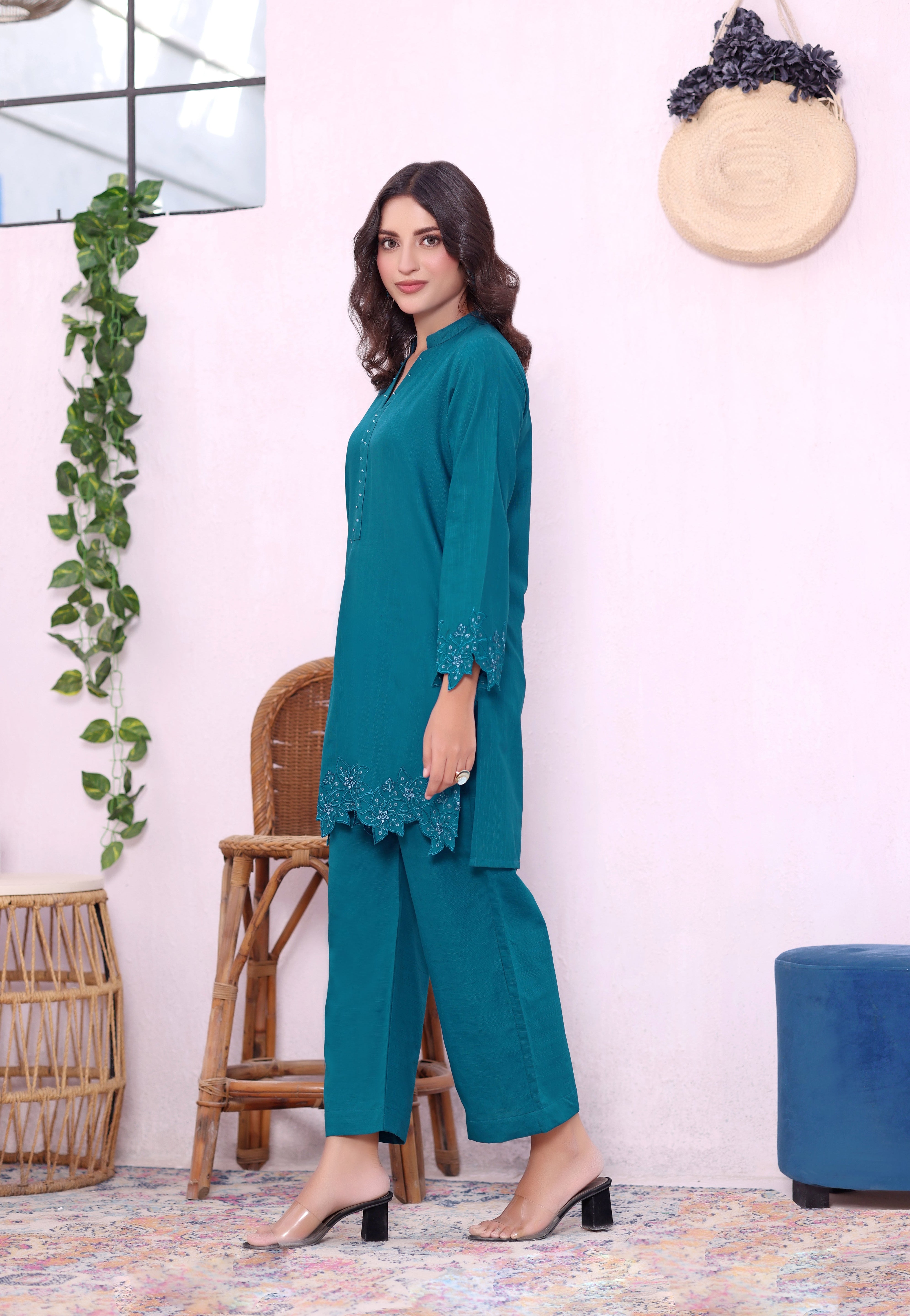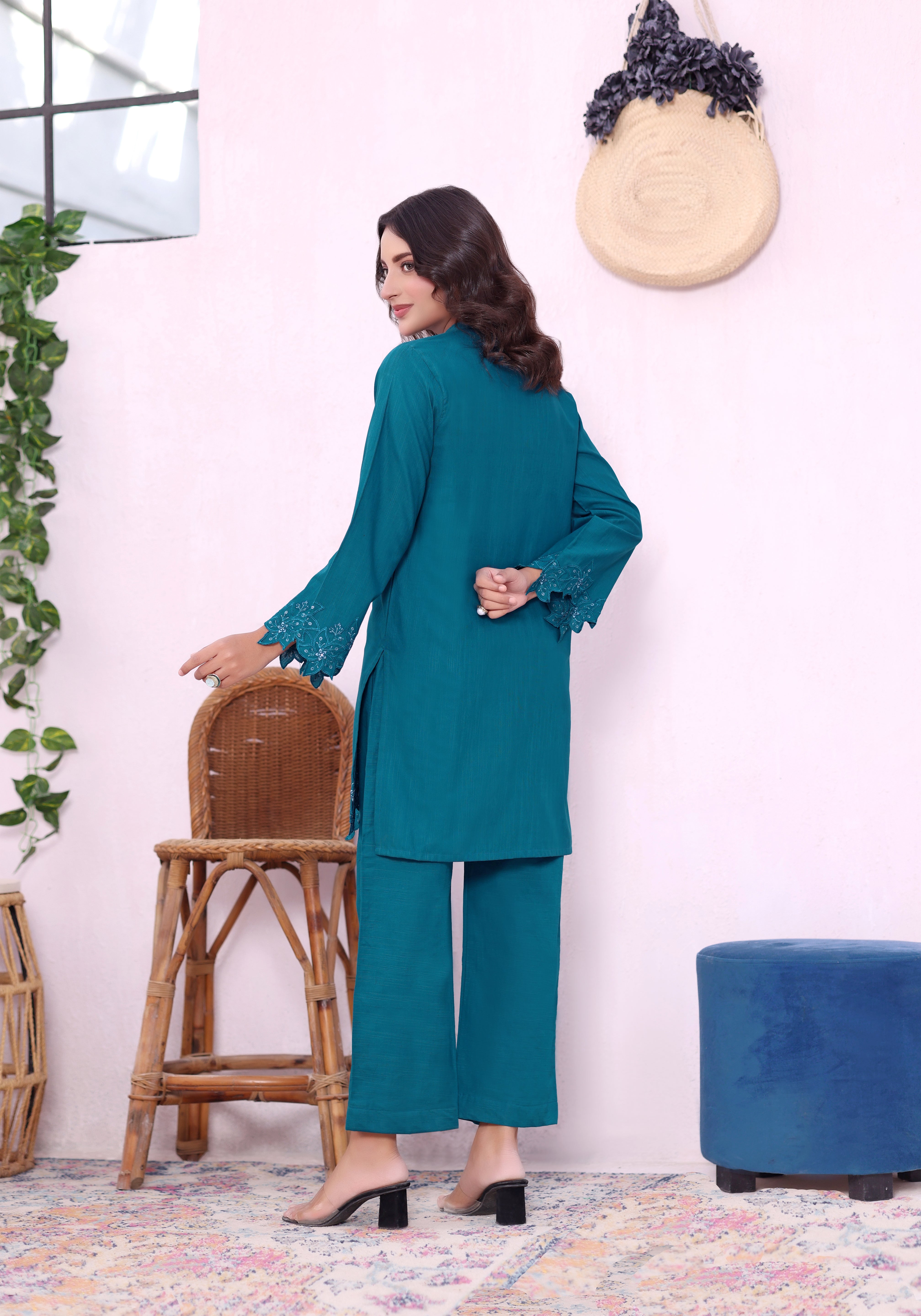 Mint khaddar Embroidered 2PC Dress