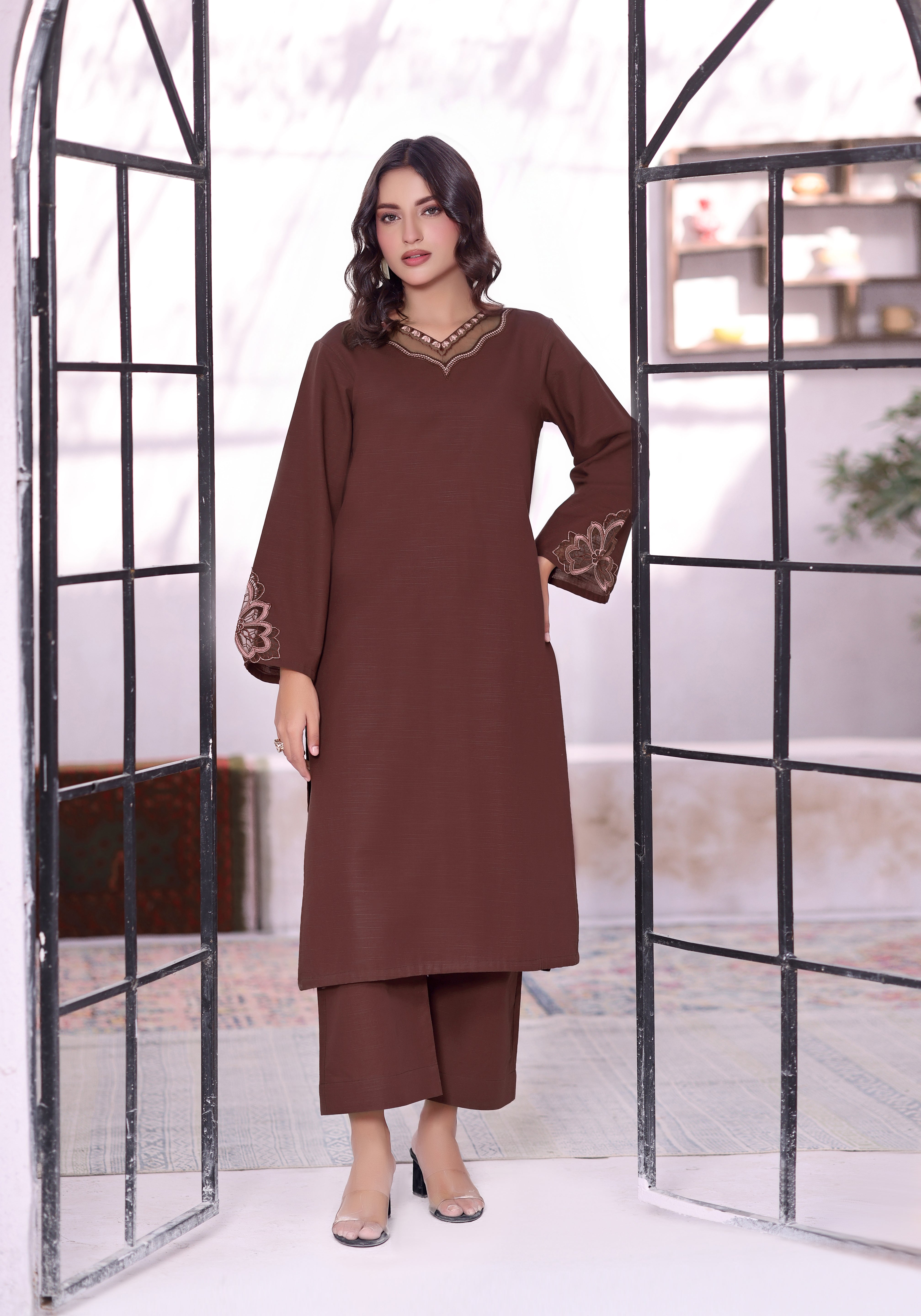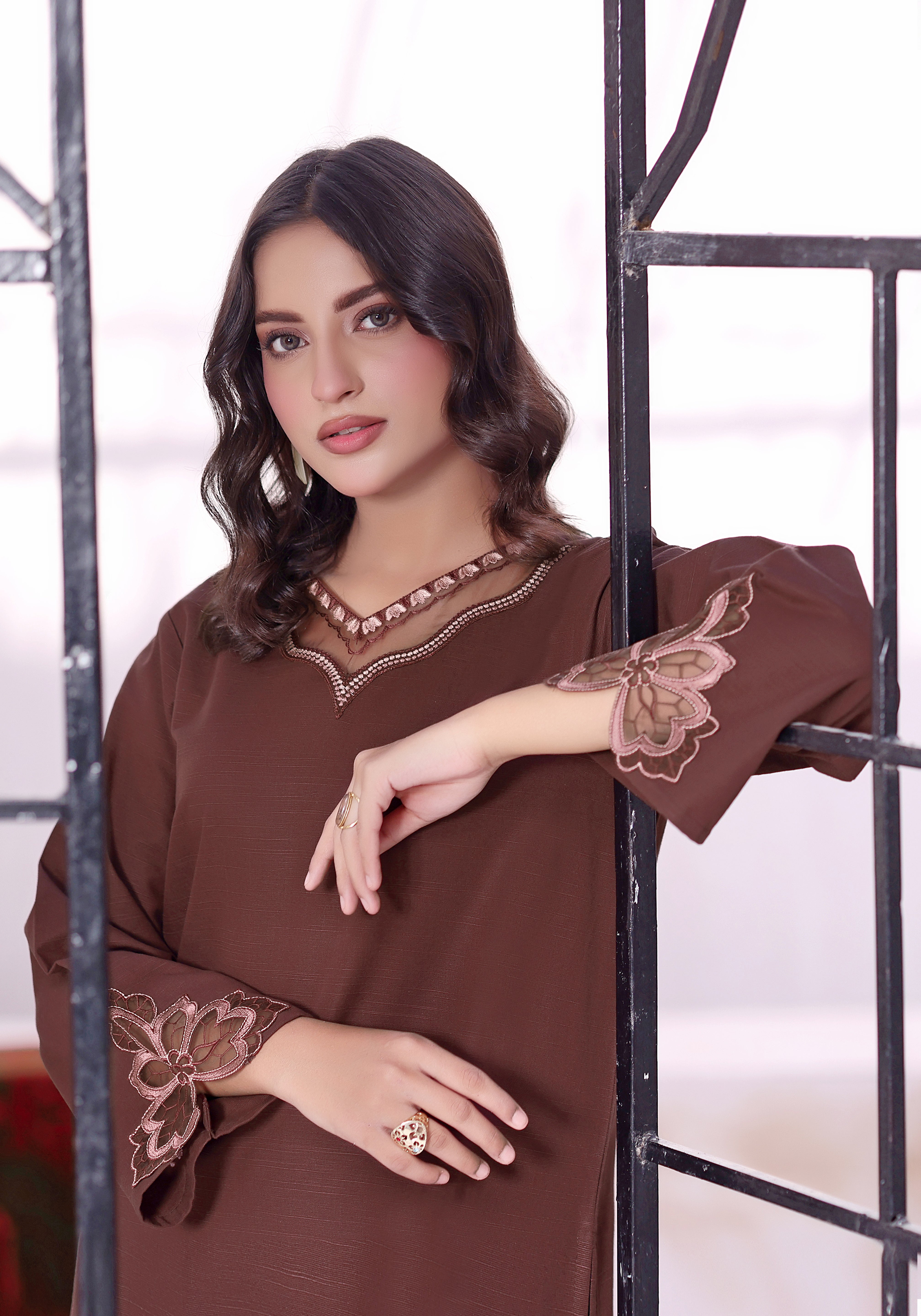 Rust Schiffli Lawn 2PC Dress