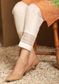Cambric Cotton Pearl-White straight Pants having fine embroidery on Organza on the bottom part.
