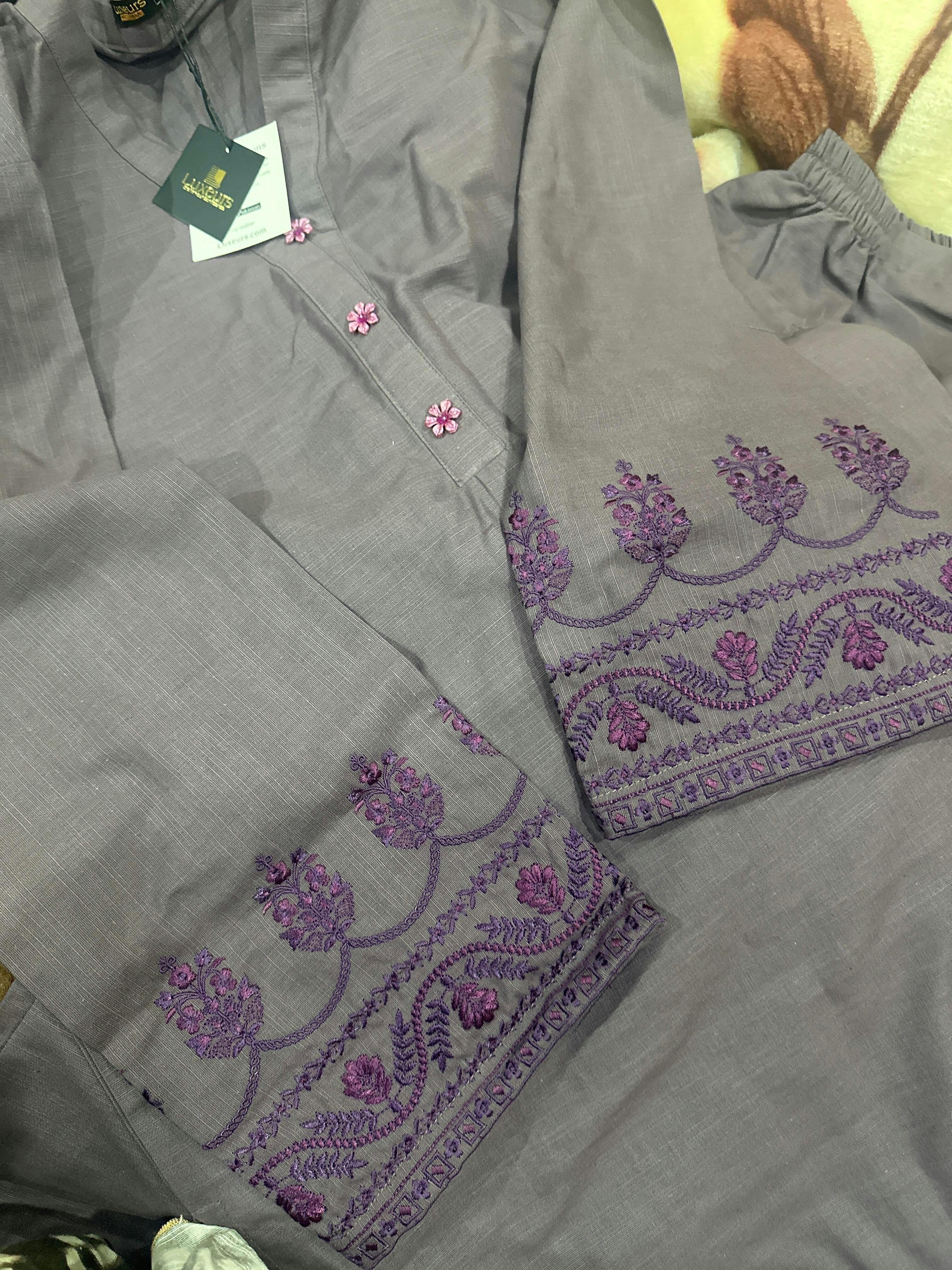 Blossom khaddar Stitched Embroidered 2PC Dress with following details: